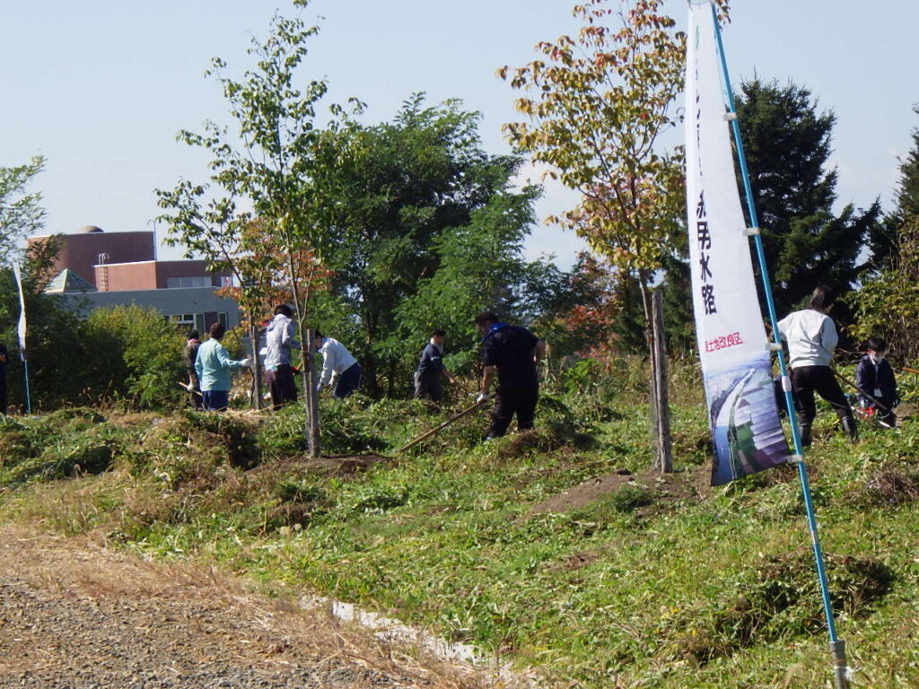 令和7年10月2日、今年最後の北海幹線景観管理支援活動として、一般国道234号岩見沢市栗沢町南幸穂にある北海幹線の周りの草刈をしました。